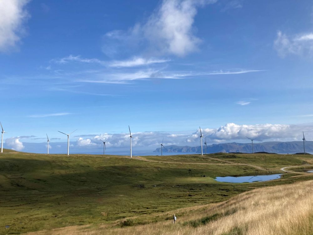 - Mountain blanket bog with erosion gully’s and windmills on Kråkenes